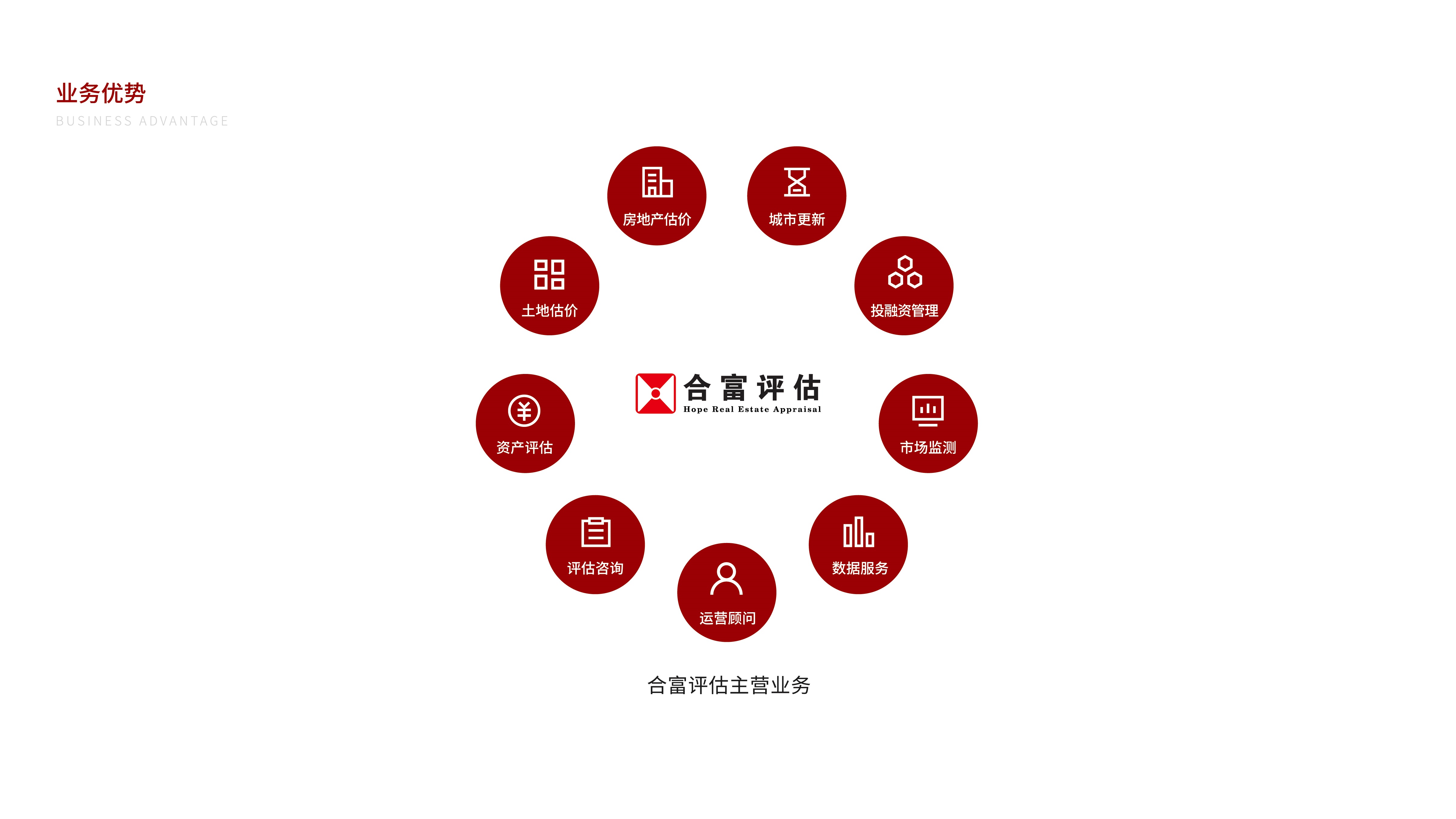 合富輝煌以其深耕、專業(yè)的經(jīng)驗積累,建立了強大的智慧中樞,通過才智藍籌的高素質(zhì)精英人才團隊和高數(shù)據(jù)化、強整合化的專業(yè)模型,為客戶提供策略顧問、數(shù)據(jù)研究、價值評估、風險控制、評估咨詢、投融資管理等服務。